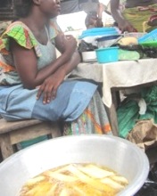 Les amateurs se bousculent, l’eau à la bouche, devant le petit stand à l’huile qui chantonne comme aujourd’hui, jour de marché. Pourtant Christiane, la cuisinière n’affiche pas une mine réjouie. Même si le koliko est le « numéro un » des encas togolais, les affaires ne marchent pas si bien.