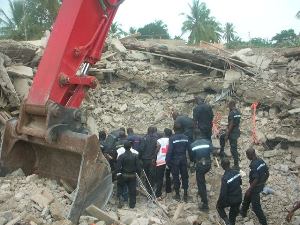 « Aussitôt, j’ai fait appel aux sapeurs-pompiers qui n’ont pris de temps pour venir. Dix minutes après, le ministre de la sécurité (le Colonel Yark Damehane) était aussi là. Avec l’arrivée des pompiers et les autorités, les fouilles ont permis d’extraire deux survivants, un troisième est décédé. Un quatrième est toujours recherché », a ajouté ce policier à la retraite encore sous le choc.