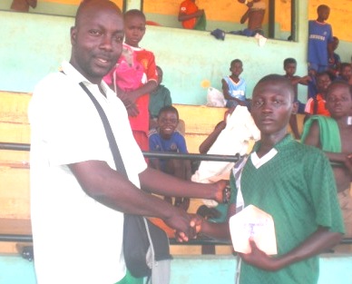 En Photo: Yacoubou Tairou, promoteur de l’Académie des Sept Collines d’Atakpamé remettant le trophée au capitaine du PPS