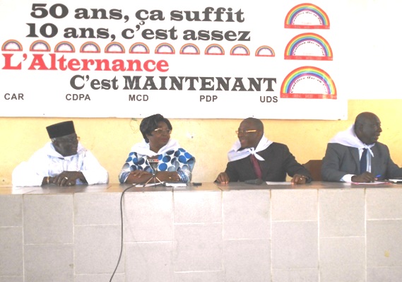 C’est le message qu’on pouvait lire sur une banderole brandie ce vendredi par les responsables de la Coalition « Arc-en-ciel », lors d’une conférence de presse au cours de laquelle, ce regroupement de partis politiques de l’opposition a officiellement démarré sa campagne électorale.