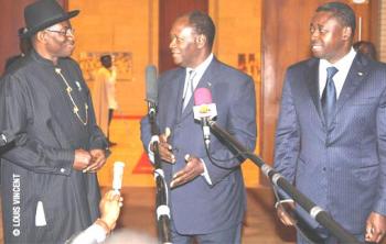 Les présidents Alassane Ouattara de la Côte d’Ivoire et Jonathan Goodluck du Nigeria (mandatés par la CEDEAO lors de son dernier sommet) ont échangé pendant plusieurs heures vendredi à Lomé avec des acteurs politiques togolais en vue des élections législatives « apaisées » le 25 juillet.
