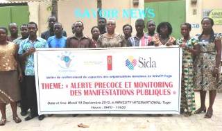 Une vingtaine de délégués des organisations membres du Wanep-Togo (Réseau Ouest-Africain pour l’édification de la paix » ou « West Africa Network for Peace building ») ont été mieux outillés ce mardi à Lomé sur les concepts « d’alerte précoce » et de « monitoring des manifestations publiques ». Des membres de la coordination du Réseau ont également pris part à cette formation dans les locaux d’Amnesty International, a constaté une journaliste de l’Agence Savoir News.