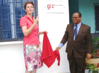 En Photo: La plaque du bureau de la GIZ à Kpalimé dévoilée par M. Semodji et Mme Schieber