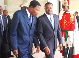 Le chef de l’Etat togolais Faure Gnassingbé s’est rendu ce vendredi à Cotonou pour une visite de quelques heures. Il a été accueilli à l’aéroport international Cardinal Bernardin Gantin par son homologue béninois Boni Yayi. Après un petit entretien en tête à tête au salon d’honneur de l’aéroport, les deux chefs d’Etat se sont retrouvés au Palais de la présidence de la république pour une séance de travail, élargi aux délégations ministérielles des deux pays.