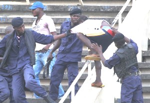 Dimanche, alors que le match entre Koroki et Gbikinti, comptant pour la 20e journée a pris fin sur un score nul (0-0), des supporters du club local s’en sont pris aux joueurs, dirigeants, supporters du club visiteur et aux forces de l’ordre avec parfois des objets contondants. Certains sont repartis sur des civières parce que copieusement lynchés pendant que véhicules et équipements ont été saccagés.