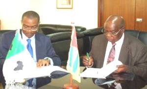 En Photo: MM.N’guessan (à gauche) et Ayassor lors de la signature des documents