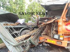 L’accident est survenu entre un gros porteur (Titan) et un camion des Forces armées togolaises (FAT) transportant des planches, des sacs de charbons, des bidons d’huile rouge et des oranges.