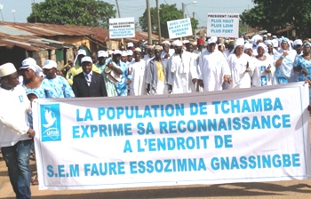 Pour témoigner leur gratitude et reconnaissance envers le chef de l’Etat qui a bien voulu que ce soit un de leur fils qui dirige pour les cinq ans à venir le parlement togolais, les populations de Tchamba ont rué de tous les côtés vendredi pour prendre d’assaut les rues de la ville.