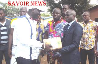 En Photo: King Mensah remettant le lot de produits à M.Idrissou