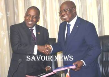 En Photo: MM. Adji Otéth Ayassor (à droite) et Madani Tall lors de la signature de la convention