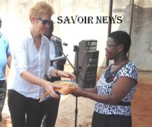 En Photo: Dr Viviane Van Steirteghem (à gauche) remettant symboliquement un lot de moustiquaires à Mme Noményo Akpédzé