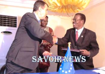 En Photo: M. Berlanga-Martinez (à gauche) et M. Allassane Tchakpédéou (Chef de la délégation spéciale de la ville de Sokodé) lors de la signature