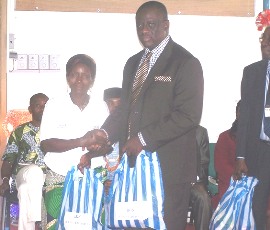 En Photo: Dr Charles Birregah remettant de cadeaux à une veuve