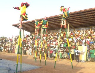 En Photo: Des échassiers du groupe Aguélè d’Atakpamé lors de ce grand carnaval