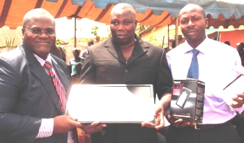 En Photo: Dr Justin Koffi (à gauche) et des responsables des médias bénéficiaires