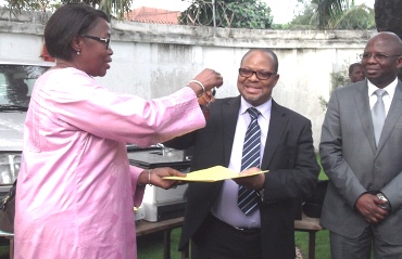 En Photo: Mme Khardiata Lo N’Diaye remettant les clés des véhicules au ministre Sèmodji