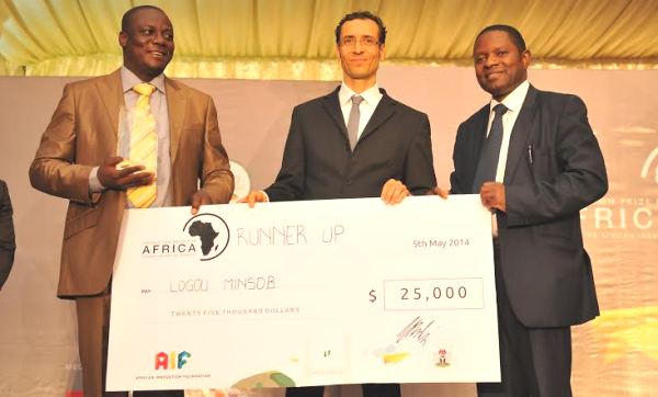 En Photo: Jules Minsob Logou (à gauche) recevant son prix le 5 mai 2014 à Abuja