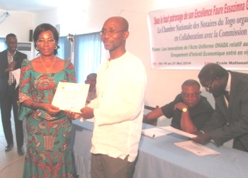 Une soixantaine de notaires togolais en formation axée sur le thème « les innovations de l’Acte Uniforme OHADA relatif au droit des sociétés commerciales et du Groupement d’Intérêt Economique (GIE) entré en vigueur le 5 mai 2014 » depuis lundi à Lomé, se sont séparés ce jeudi après une cérémonie de clôture présidée par Me Kadjaka Abougnima Molga présidente de la chambre nationale des notaires du Togo, a constaté une journaliste de l’Agence Savoir News.