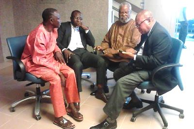 En Photo: Patrick Lawson (à droite) et certains responsables de l’opposition, sortis de la salle pendant la +tension+