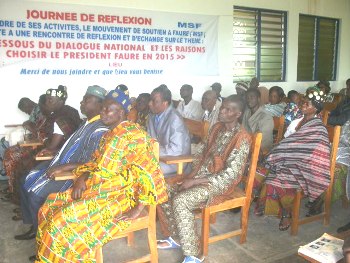 La séance a été animée par Pafio Dobou, chef de la délégation MSF. Ce dernier a présenté à l’assistance, deux communications, centrées sur le thème principal : « les dessous du dialogue national » et « Les raisons de choisir le président Faure en 2015 ».