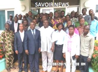 NB: Photo de famille des autorités avec les participants à la rencontre sur la traite des enfants dans l’Ogou et l’Anié