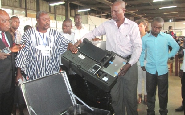 Ces kits sont composés d’un ordinateur portable muni d’un appareil photo numérique et d’un lecteur d’empreintes digitales, avec une imprimante et des batteries rechargeables, le tout emballé dans une caisse métallique.