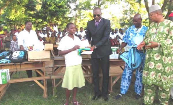 En Photo: M.Latta remettant de kits scolaire à une élève