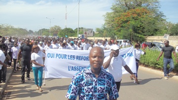 Photo @ Archives : Des militants et sympathisants de la Majorité Silencieuse lors d’une marche le 1er juillet 2014 dans les rues de Lomé