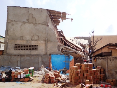 Selon des témoins, l’immeuble, surchargé de cartons de glutamate mono sodique, s’est effondré aux environs de 19H.