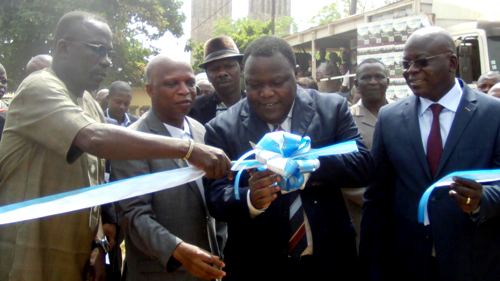 En Photo: M. Kuéku-Banka Johnson, coupant le ruban symbolique