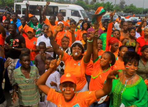 A Abidjan, des grappes de supporteurs, ivres de joie hurlaient à chaque coin de rue au passage des voitures, dont beaucoup étaient ornées du drapeau national.