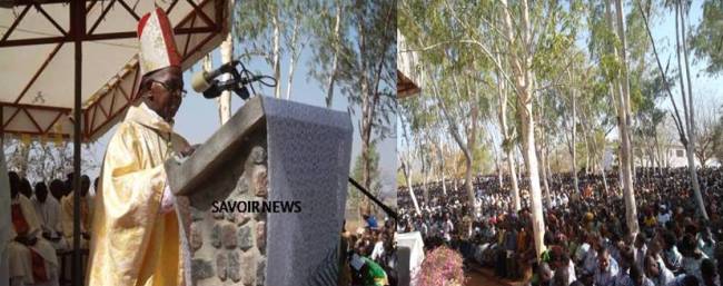 Cette messe qui ouvre ainsi les festivités du jubilé d’or du diocèse de Dapaong, a été présidée par l’évêque de Dapaong, Mgr Jacques Anyilunda, entouré d’une cinquantaine de prêtres, devant plusieurs milliers de fidèles rassemblés à cette occasion.