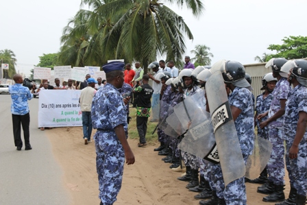 Une trentaine de policiers et gendarmes ont occupé les lieux, la manifestation ayant été interdite par la Mairie. Le chef de la Délégation de la ville de Lomé avait suggéré aux manifestants de tenir leur sit-in du côté de la plage.