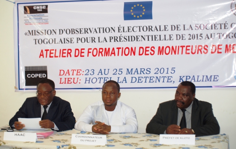 Quelques acteurs de la Société Civile et membres de la Haute Autorité de l’Audiovisuelle et de la Communication (HAAC) prennent également part à cette formation initiée par la Concertation Nationale de la Société Civile (CNSC) du Togo avec l’appui technique et financier de l’Union Européenne, dans le cadre de la mise en œuvre du projet « mission d’observation électorale de la Société civile togolaise pour la présidentielle de 2015 au Togo ».