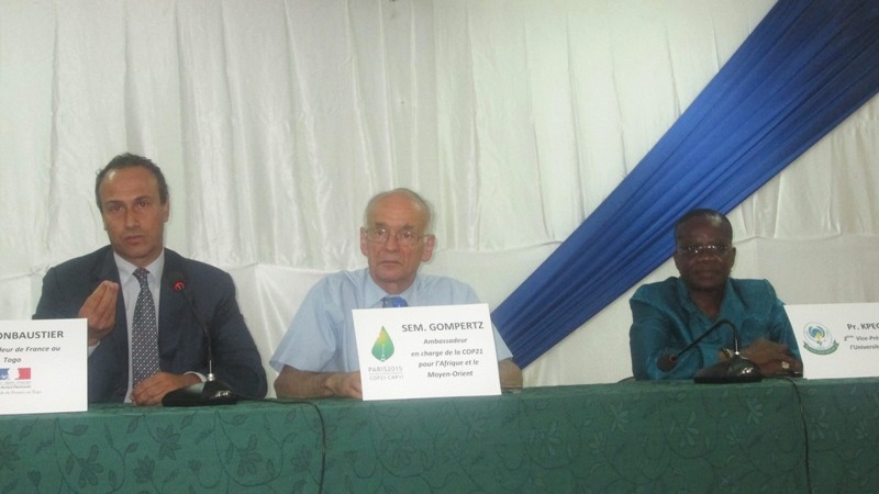 Organisée par l’Ambassade de France et l’Institut Français du Togo, cette conférence-débat a permis à M.Gompertz d’exposer les grands enjeux de la +COP21+ : la limitation du réchauffement climatique global à 2°C, l’adaptation nécessaire des sociétés aux dérèglements climatiques déjà constatés et le processus d’élaboration d’un accord permettant de changer notre trajectoire et de préserver la Maison commune.