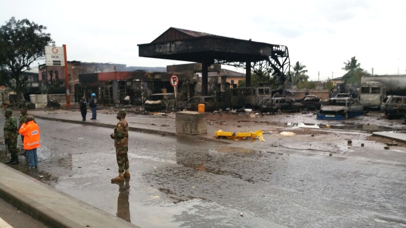 « C’est avec beaucoup d’affliction que j’ai appris la triste nouvelle de l’explosion d’une station-service mercredi à Accra et des pluies diluviennes qui se sont abattues sur la capitale et ses environs coûtant la vie à plus d’une centaine de personnes et causant d’importants dégâts matériels. Face à cette tragédie particulièrement douloureuse, je tiens à vous adresser au nom du peuple togolais, de son gouvernement et au mien propre, mes condoléances les plus sincères », écrit Faure Gnassingbé.