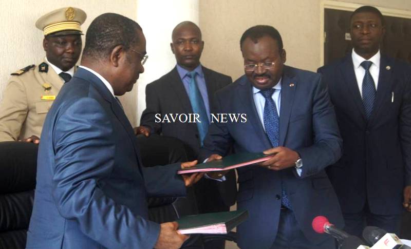 Quatre grands moments à retenir : (i) tête à tête qui a duré une vingtaine de minutes entre les deux hommes, (ii) intervention du secrétaire du gouvernement, (iii) signature et échanges de documents, suivis d’allocutions (iv) et le passage en revue par le nouveau Premier ministre, d’un petit détachement de la gendarmerie à l’entrée de la Primature.