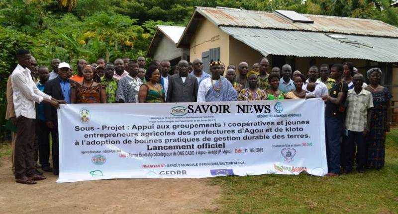 Le projet d’appui aux groupements, coopératives et jeunes entrepreneurs agricoles des préfectures d’Agou et de Kloto à l’adoption de bonnes pratiques de gestion durable des terres, initié par le Centre d’Assistance aux Démunis et Orphelins (CADO) en collaboration avec les populations locales et les services techniques déconcentrés de l’Etat, a été officiellement ce jeudi à Agou Avédzé (environ 108 km au nord de Lomé), a constaté un envoyé spécial de l’Agence Savoir News.