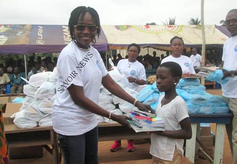 En Photo: Afia Mala, remettant de kit scolaire à une élève