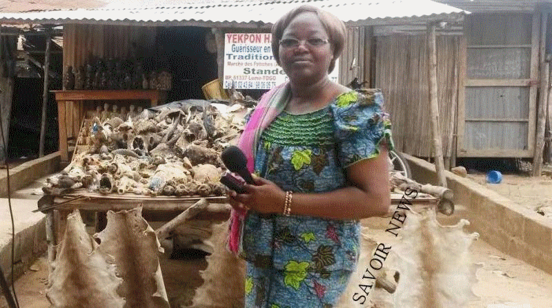 En Photo: Journaliste de Savoir News, devant un étalage au marché des fétiches de Lomé