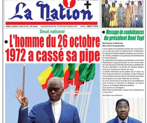 « Décès du Général Mathieu Kérékou: La Caméléon a cassé sa pipe à 82 ans », abonde dans le même sens, L’Evénement Précis pour qui le Bénin a perdu l’un « de ses dignes fils ».