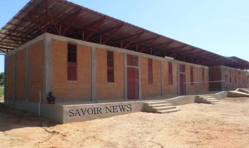 Les deux bâtiments séparés par un hall devant servir de salle de réunion, comprennent chacun, trois classes entièrement équipées en tables-bancs.