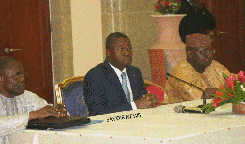 Faure Gnassingbé avait à ses côtés : Batienne Kpabre-Sylli (ministre auprès de la présidence de la République) et Payadowa Boukpessi (ministre de l’Administration territoriale, de la Décentralisation et des Collectivités locales).