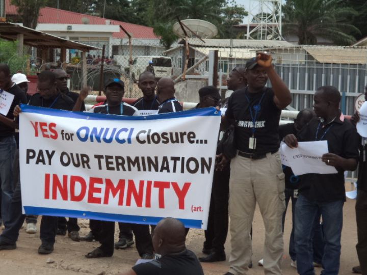 Plusieurs centaines d’employés locaux de la Mission de l’ONU en Côte d’Ivoire (Onuci) ont manifesté jeudi à Abidjan et à Bouaké, deuxième ville du pays, pour réclamer des « indemnités » de licenciement avant le retrait définitif de cette mission, prévu en juin 2017.