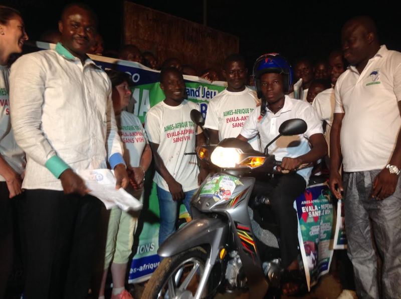 Grand jeu tombola : Jeu Tombala organisé pour les étudiants dépistés ainsi que ceux qui ont réalisé leur test de dépistage avec Aimes-Afrique lors des 5 dernières éditions sur le terrain du Ceg Tomdè le samedi 16 juillet, avec divers prix (Tricots, casquettes, préservatifs, clés usb) dont une moto (super gros lot), remporté par l’étudiant Tinè Ogou.