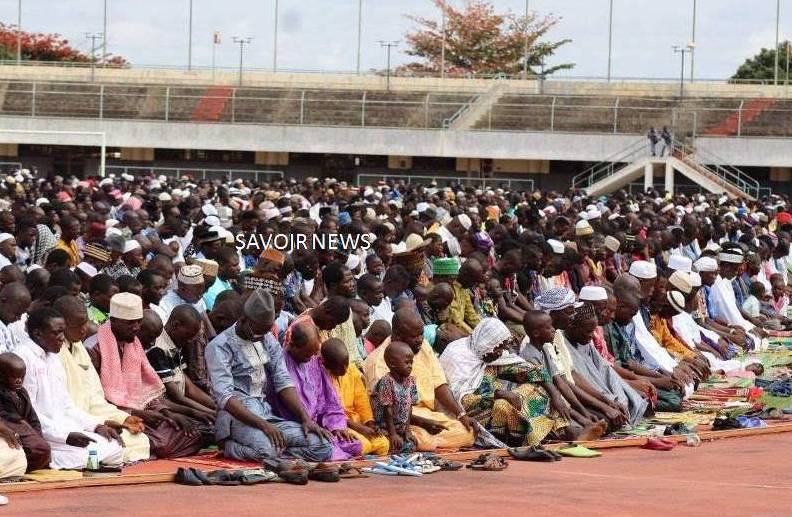 Rassemblés sur l’aire de jeu du stade, des milliers de fidèles musulmans ont prié et loué Allah pendant près d’une heure d’horloge.