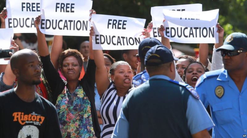Les étudiants grévistes brandissaient des pancartes réclamant « L’éducation gratuite pour tous » ou proclamant « L’Afrique du Sud est profondément inégalitaire ».