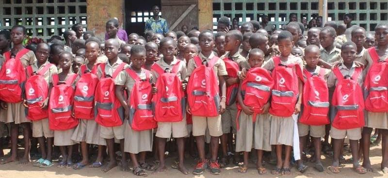 Composé de sacs aux couleurs de Total, des paquets de cahiers, des stylos, gommes et ensembles géométriques, le don à été remis par Jérôme Golo, Responsable Hygiène, sécurité, santé et environnement à Total Togo (représentant le Directeur général de Total Togo).