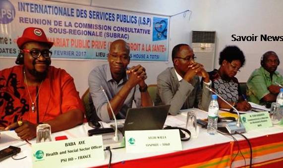« Les syndicats affilés à l’ISP au Togo se sont réunis aujourd’hui avec l’appui de cette fédération afin qu’on soit éclairci sur ce qu’on appelle partenariat public privé. Selon le ministère de la santé ce partenariat va s’exercer dans notre système de santé plus précisément dans certains hôpitaux. En temps que syndicats et acteurs de défenses des droits de la population, il nous faut nécessairement comprendre ce concept, ainsi que ces avantages et inconvénients et le genre de contrôle que la société civile peut exercer », a déclaré Mme Nadou Lawson (secrétaire général de la Fédération Nationale des Syndicats des Secteurs Publics).