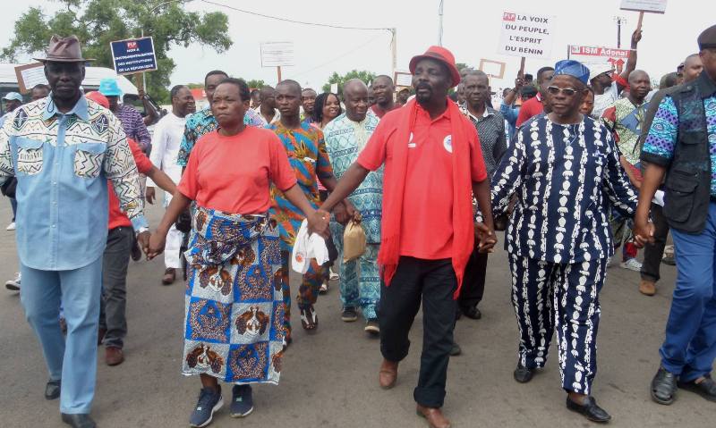 Sur des banderoles et pancartes, on pouvait lire : « Non à cette révision sans le peuple », « Non à la privatisation du Bénin dans l’intérêt de Patrice Talon », « Non à cette révision opportuniste » ou « La voix du peuple, l’esprit du Bénin ».